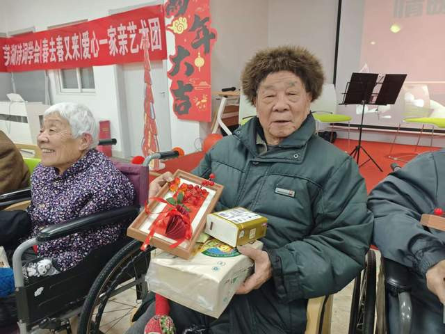 老人们捧着崭新的书籍,欣赏着精美的刻画与板画作品,手拿书法家现场书写的春联作品,脸上洋溢着幸福的笑容。一位年过八旬的老人激动地说:“感谢志愿者们的关心,不仅能看到这么精彩的节目,还能收到书籍和艺术品,这个冬天太温暖了!” 一份份礼物,承载着社会各界对老年群体的关爱;一声声感谢,凝聚着老人们对志愿者的真挚情谊。这种双向的温暖互动,让敬老爱老的传统美德在实践中传承,让温情在江城大地上不断流淌。