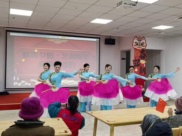演出在京剧曲牌《迎春》与二胡齐奏《北京有个金太阳》中拉开帷幕。张启义、王啄等七位演奏者默契配合,二胡的悠扬旋律与京剧的经典韵味交织,时而激昂澎湃,时而温婉绵长,瞬间将现场氛围点燃,也寄托了对新春的美好期盼与对祖国的赤诚热爱。紧接着,张美玲的女声独唱《亲吻祖国》深情婉转,歌声里满是对祖国山河的眷恋与赞美,乐队伴奏丝丝入扣,让老人们沉浸在浓郁的爱国情怀之中;薛春生、李芳园等表演者带来的伞舞《雨巷佳人》,舞姿轻盈曼妙,油纸伞在演员手中流转开合,宛如江南烟雨里的灵动画卷,尽显古典雅致之美。